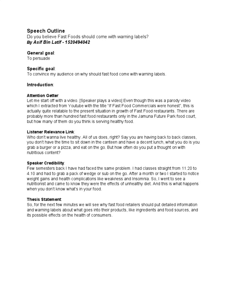 Essay On Fast Food Warning Labels - 1528 Words | Internet ... The same should happen to all fast-foods, fast-foods should have warning labels on them warning potential customers about their dangerous hazards. There are very few downsides and very many upsides to why there should be fast food warning labels.
