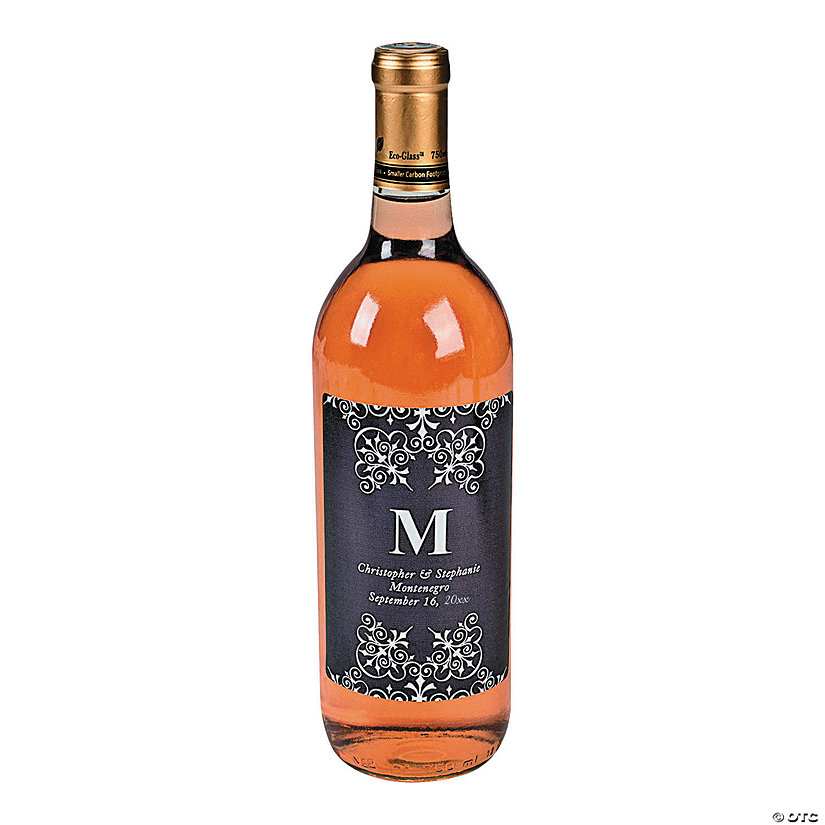 Personalized Monogram Mini Wine Bottle Labels - Oriental Trading Description Personalize It! Send your wedding guests home with a token of appreciation when you add these personalized stickers to your favorite mini wine bottles. Great for bridal shower favors, wedding favors and even anniversary party favors! Personalize with 1 character and 1 line of text. Vinyl. (27 pcs. per unit) 2 1/4" x 2 3/4" © OTC $16.79 Personalized Monogram and Classic Blue Wine Label | Zazzle Easily customize a bottle of wine and make it 100% your own by adding a label! Perfect for weddings, bachelor parties, and birthday parties. Dimensions: 3.5" x 4"; fits most standard sized wine bottles Each set includes 6 matte labels Scratch-resistant and waterproof Vibrant, full-color, photo-quality printing that stands the test of time Personalized Wine Bottle Labels - Winter | Kate Aspen Personalized adhesive wine bottle labels (not waterproof) in a Winter wood design Measures 4w x 4.7"h Suggested application: Remove store label from wine bottle, make sure bottle is dry, apply personalized label where store label was located Minimum order 24 Wine bottle not included Personalized Monogram Wine Bottle Labels - 12 Pc. Add a personal touch to your wedding wine bottles with these wine bottle labels! A simple way to make your wine selection stand out, your wedding reception will be poppin' in no time. Personalize with 4 lines: 1 character on the 1st line and 26 characters/spaces on the 2nd - 4th lines. (1 dozen stickers per sheet) 3 1/2" x 4 1/2" © OTC