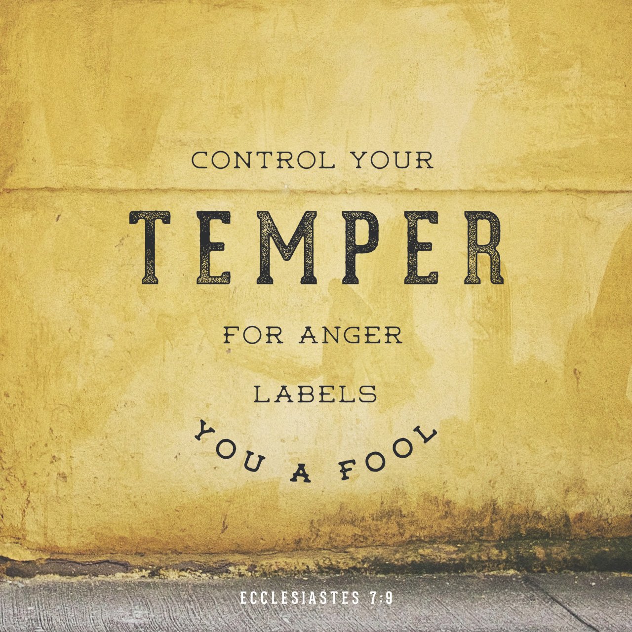 Ecclesiastes 7:9 Control your temper, for anger labels you a fool ... Control your temper, for anger labels you a fool.