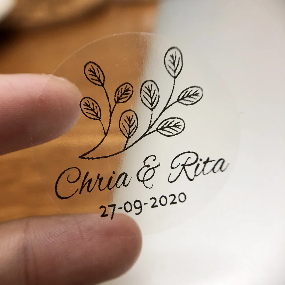 100 pcs/set Custom Transparent Labels,Label Clear,party Wedding Favor Stickers ,Add Your Names and Date,handmade